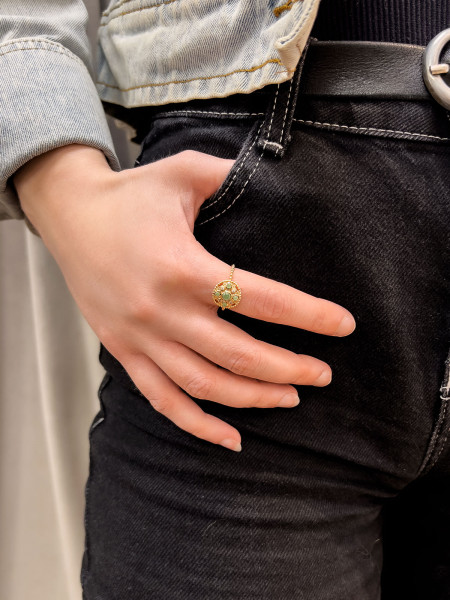 Une superbe Bague aux nuances vertes pour habiller de façon subtil et colorée vos belles mains, une nouveautés absolument réussie chez Matsaï Mara !