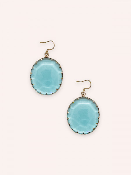 Une superbe paire de boucles d'oreilles en acier inoxydable, ornée d'une magnifique Amazonite. Ce modèle est décliné en plusieurs couleurs de pierres.