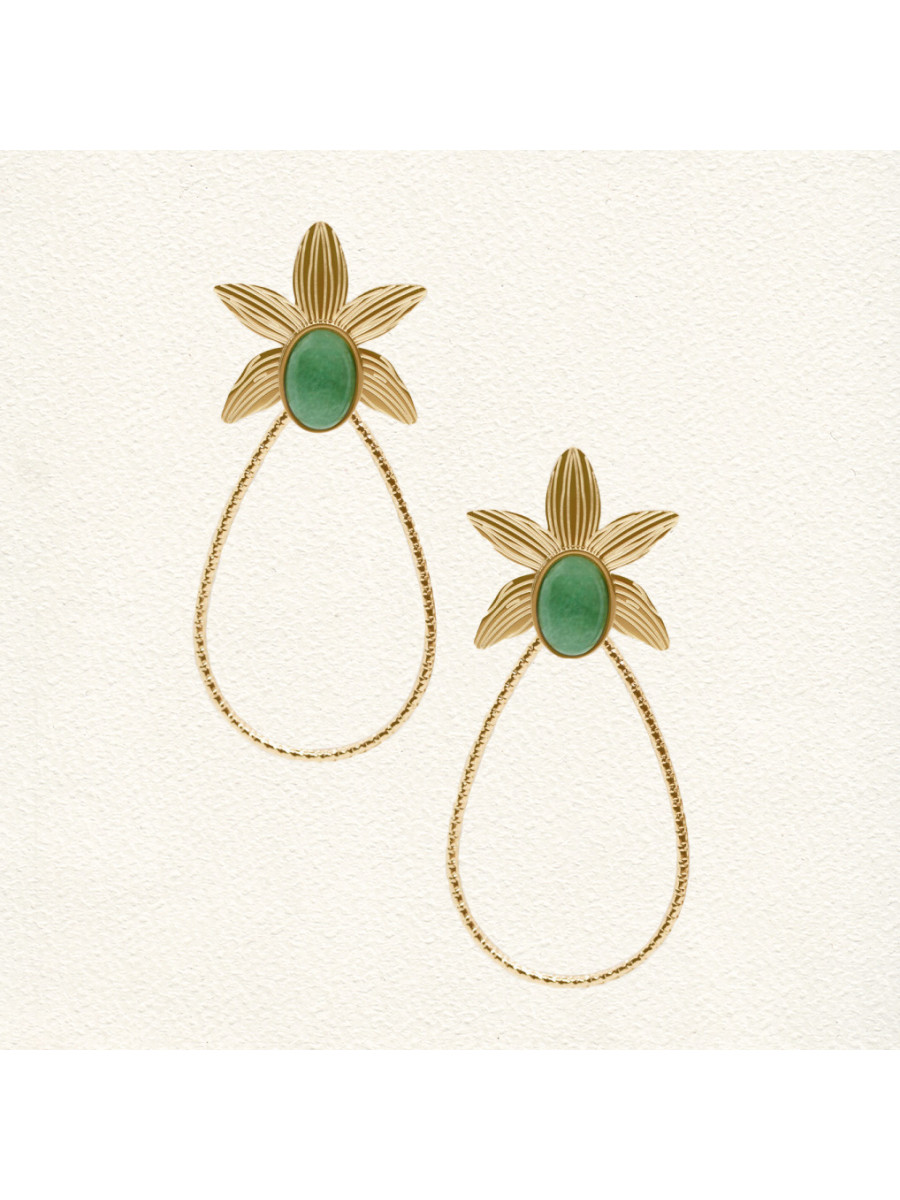 Une superbe paire de boucles d'oreilles en acier inoxydable, ornée d'une magnifique Aventurine.