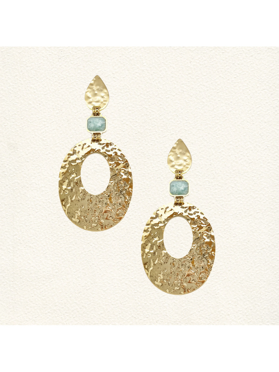 Une superbe paire de boucles d'oreilles en acier inoxydable, ornée d'une magnifique Amazonite.