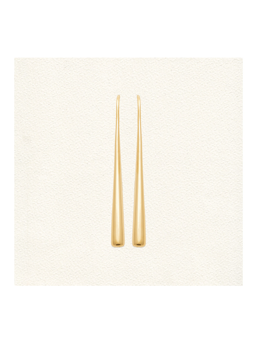 Les boucles d'oreilles Loon de Matsai Mara, en plaqué or français recyclé, présentent des gouttes pendantes au design épuré et élégant. Leur forme fluide et lumineuse ajoute une touche de sophistication à chaque mouvement.