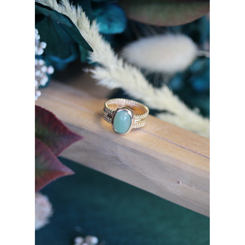 Une très jolie bague en Plaqué Or, très bien travaillée, surmontée d'une sublime Aventurine.